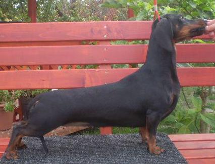 Eredmnyek: HJCH, HCH, 2xCACIB; Szn: fekete-cser / black and tan; Mret: norml / standard