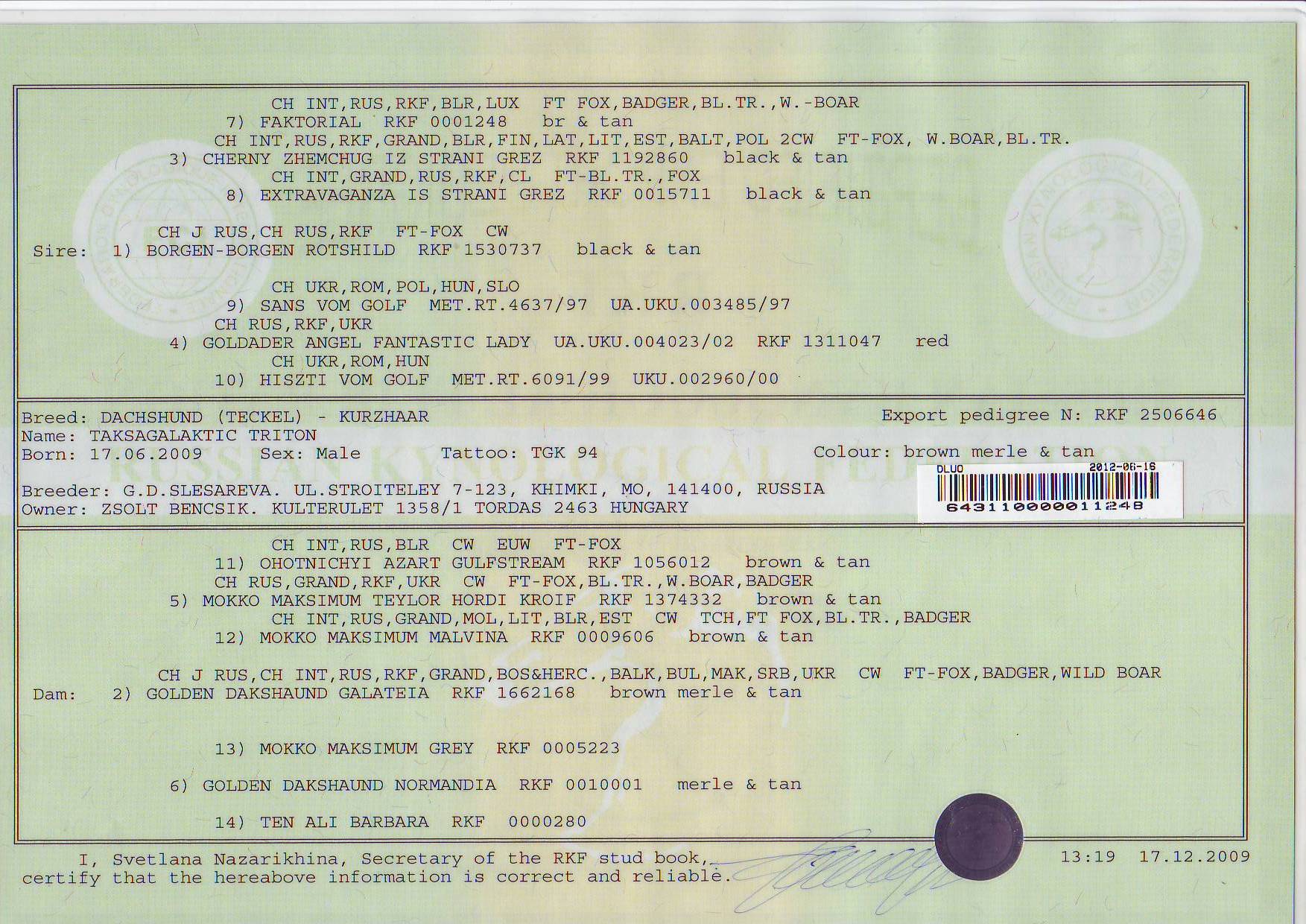 WUT Dachshund World Dogshow Bükkfürdő 2012'